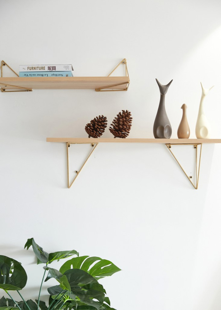 最后再来看看一些细节上的处理,客厅的背景墙上,做了一些简单的装饰收纳板,再放上一些简单可爱的艺术品,在绿植的衬托下,整个客厅背景墙不会单调。
