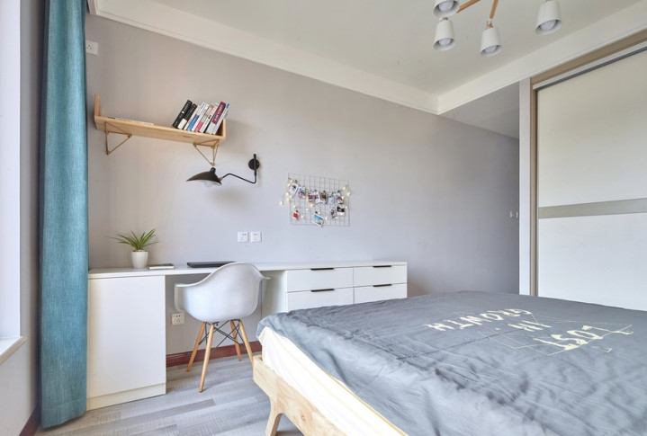 床的旁边是定制的衣柜,入墙的衣柜不仅空间更大,而且移动门的设计节省了很多的空间,整个卧室给人一种舒适温馨以及能够放松的氛围,特别是在色彩的搭配上,和客厅其实形成了很大的反差,当然这也比较容易理解。